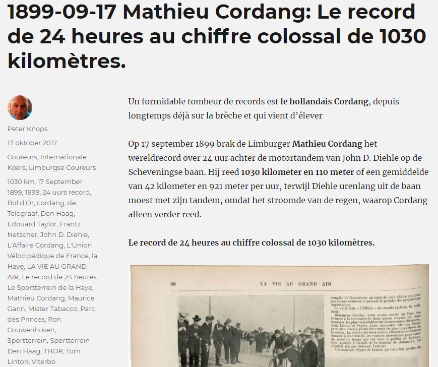 Een jaar eerder, klik en lees het verslag van Cordang’s wereldrecord Den Haag 1899: