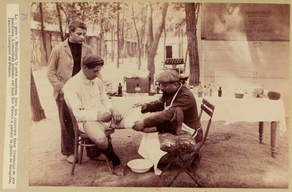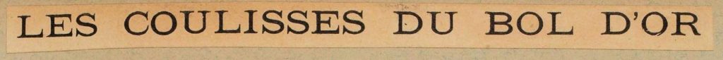 Chevalier, zijn trainer, masseert hem. Cordang is opgewekt, vol ernstige moed. Kort daarna is het voor de rijders tijd om zich naar den afrit te begeven. Eer allen gereed zijn en een fotograaf in de reeds vallende schemering een kiekje genomen heeft is het reeds een kwartier over den bepaalde tijd en mijn chronometer wijst kwart over zes als het startschot valt. In het geheel zijn 12 renners voor den Bol d’Or ingeschreven, te weten Cordang (Nederland), Walters (Engeland), Foureaux (Frankrijk), Oliver (Frankrijk), Garin (Frankrijk), Chevalier (Frankrijk), Huret (Frankrijk), Muller (Italië) Frederick (Zwitserland), Robl (Duitschland). Fischer, Ariès en Alleaume ontbreken op het appèl..