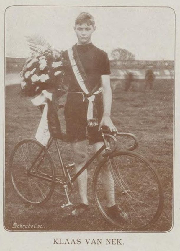 Het was de Amsterdammer Klaas van Nek (dat jaar in april ook al winnaar van de “afstandsrit” Groningen – Amsterdam) die in 1916 het Nederlands Kampioenschap voor professionals in de wacht gesleepte te Maastricht.