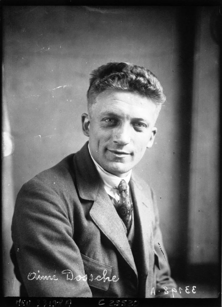 Aimé Dossche werd in 1902 geboren te Nevele als enige zoon van veevoer-uitvoeders. Een oom van hem was basislegger van de veevoederzaak aan de Schipdonkse vaart te Deinze. Hoe Aimé wielrenner werd is bijna een verhaal apart. “ik had een nonkel langs moeders kant die indertijd ook nog wat gekoerst heeft, met name Theo van Laecke. In de oorlogsperiode is hij uitgeweken naar Amerika. Ik had hem al laten verstaan dat ik ook graag gekoerst zou hebben, maar ja, een fiets kopen was toen nog een dure historie. Enfin, nonkel Theo beloofde me dat hij vanuit Amerika geld zou sturen om een machien aan te schaffen. En inderdaad, hij was daar nog niet lang en we kregen thuis een sommetje toegestuurd om me een fiets te kopen. In 1919 kon ik voor het eerst aan wedstrijden deelnemen. Ik had toen een jobke als veerman op de Schipdonkse vaart te Merendree. Ik had veel namiddagen vrij en kon aldus makkelijk links en rechts gaan rijden.