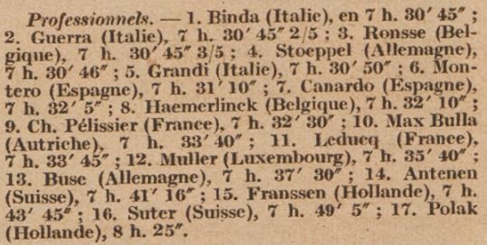 - Alfredo Binda, Italië 7 uur, 30 min, 45 sec