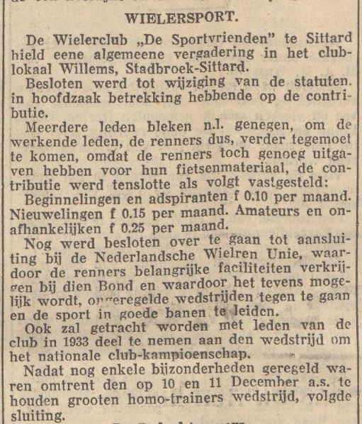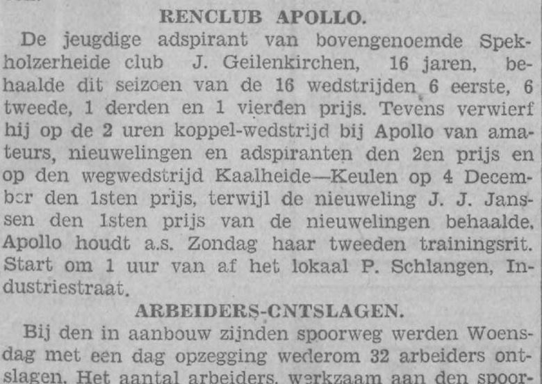 1932-12-04 Kerkrade – Köln, wegwedstrijden voor Aspriranten en Nieuwelingen, 85km