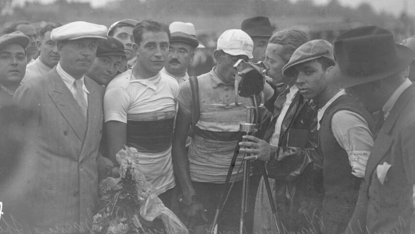 Aan de micro de nieuwe wereldkampioen Georges Speicher en zijn ploegmaat Antonin Magne die het zilver opeiste, ook Marinus Valentijn zal aansluitend geinterviewd worden.