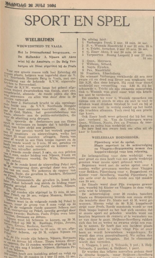 We lezen het wedstrijdverslag in de Limburger Koerier van 23 juli 1934: