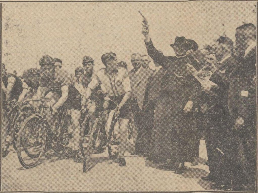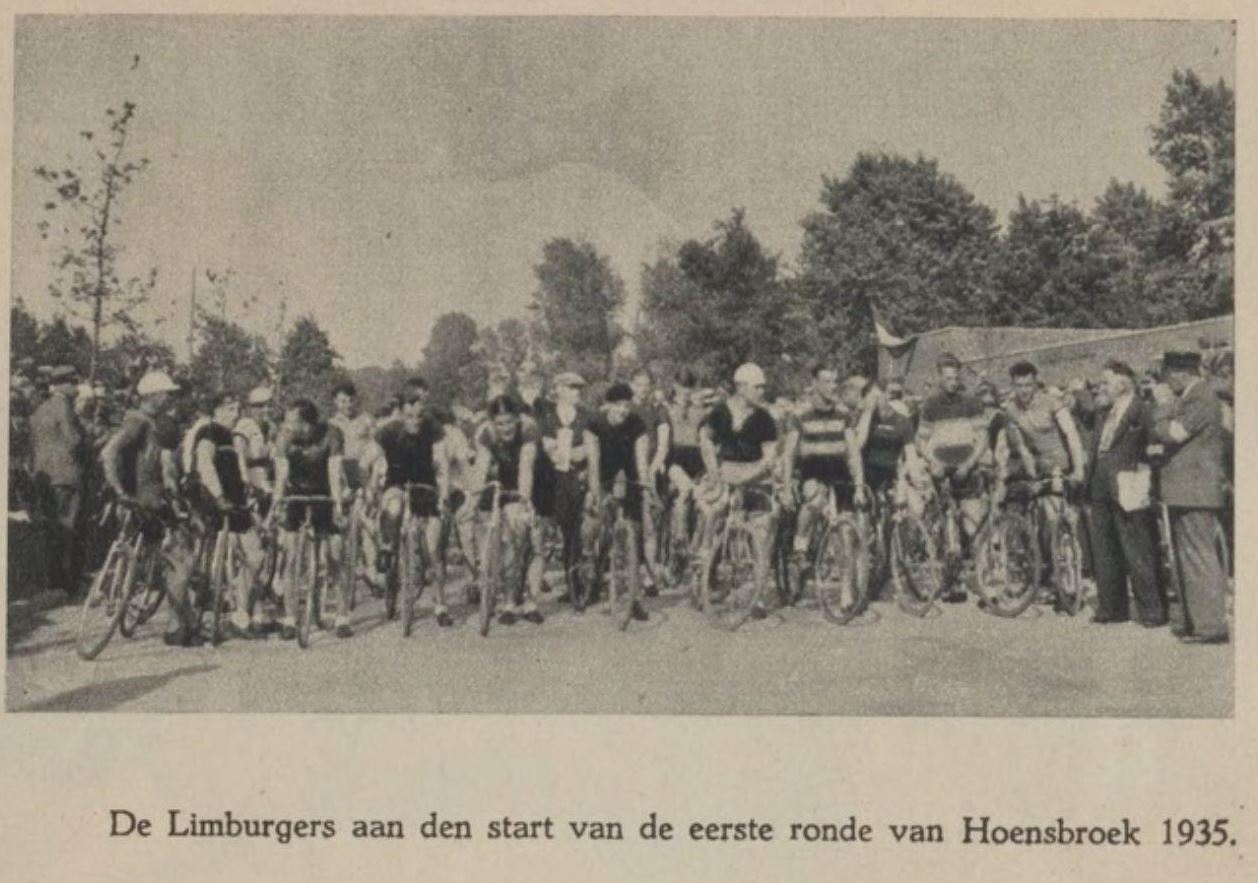 Om 2.30 uur wordt door Pastoor Röselaers het startschot gelost voor een groep van 60 amateurs Limburger Koerier 24 Juni 1935Voorbeschouwing:
