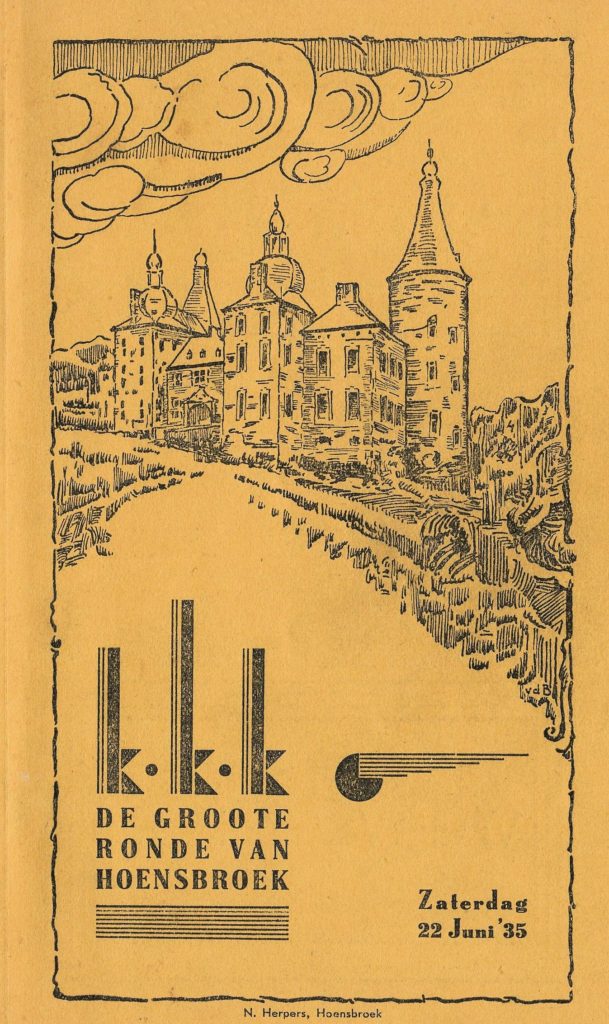 Het is niet onbekend meer wie de grondlegger van de eerste grote Limburgse wielercriteriums is geweest. Het eerste criterium werd gehouden in Eygelshoven (1 september 1934, klik hier en lees). De belangstelling was aldaar van dien aard dat spoedig meerdere wedstrijden van dit soort volgden. De Edelachtbare Heer J. H. Martin, toentertijd burgemeester van Eygelshoven, was de initiatiefnemer van dien koers. Het valt dus niet, te verwonderen dat, toen Burgemeester Martin van gemeente veranderde en in Hoensbroek zijn intrek nam, aldaar door hem ook spoedig de idee geopperd werd eenzelfde wedstrijd in het leven te roepen. Gezien het resultaat van Eygelshoven had dhr. Martin spoedig ook in Hoensbroek mensen bereid gevonden, deze onderneming — ook voor de ingezetenen van niet te onderschatten waarde — te steunen. Reeds in Oktober 1934 stond het vast dat in 1935 de ”K.K.K.” van Hoensbroek er zou komen, dank zij Burgemeester Martin. Nauwelijks was de winter voorbij of er werd begonnen met de voorbereidingen, want wil een dergelijk criterium in alle opzichten goed slagen, dan moet alles tot in de puntjes verzorgd worden, vooral daar het in de bedoeling ligt de K.K.K. ieder jaar te houden.