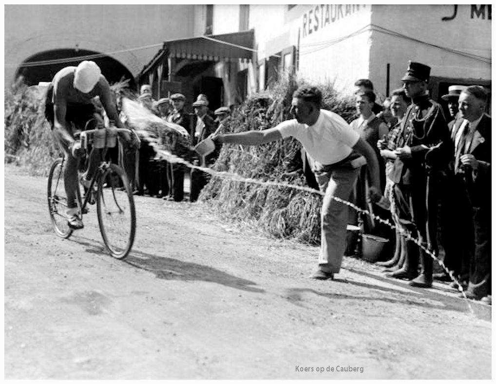 Deze groep heeft Alfons Stuijts achterhaald. Er begint thans tekening in de strijd te komen. Stuijts, die klaarblijkelijk te veel van zijn krachten heeft gevergd, laat thans hard na en verliest steeds terrein. De jonge generatie komt heftig opzetten, waartegen de ouderen niets vermogen. Veler hoop was gevestigd op Antoon van Schendel, welke in Frankrijk zo’n goeden naam had als klimmer, maar deze moest hier in de Cauberg in z’n Nederlandse concurrenten zijn meerderen erkennen. Van de 60 Amateurs die gestart waren, zijn er thans maar weinig meer overgebleven. Tot onze grote verbazing moest van Schendel de ons nog onbekenden amateur de Hoog uit Amsterdam in de Cauberg lossen. Henk de Hoog die nog nooit de Cauberg had gezien, klimt die op alsof het voor hem dagelijks werk is. De rest van de amateurs waren de Silva, Heeren, Banken, Janssen en Rob Souren. Deze kampioen van de Vredesbaan, rijdt hier een pracht wedstrijd, al was hij veel achter, hij bleef buitengewoon goed vol houden. Bij de profs zijn ook bij de grote mannen talrijke slachtoffers gevallen. Zo zagen wij, dat Piet van Nek, die in goede positie lag, uit de strijd moest wegens bandenpech en dat Aad van Amsterdam wegens valpartij eveneens onschadelijk werd gemaakt. Ook hij was nog fit en had op dat moment nog een kans om te winnen. Als nog drie ronden te rijden zijn, gaan wij eens uitkijken wie eventueel de winnaar zal kunnen worden. Onze eerste gedachten gaan naar Cees Bronger, die vanaf den beginne een prachtkoers heeft gereden en zelfs in de 14de ronde een voorsprong had van 50 seconden.