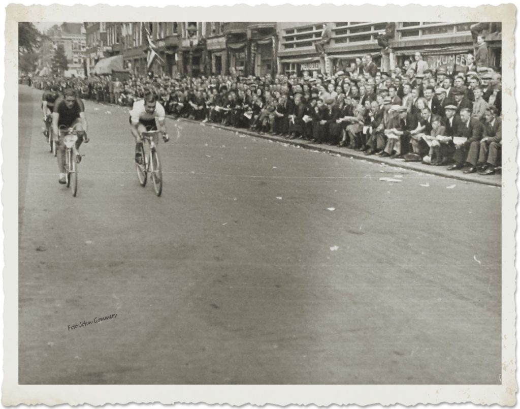 Toen zag Jan Gommers zijn kans schoon, met een sprong was hij weg, nam 100 meter, daarop volgden Van Amsterdam en van der Ruit, Braspennincx en de anderen. Gommers had de smaak te pakken, zette hard door en nu kwam hij, steeds zijn voorsprong vergrotend, ronde na ronde alleen door.