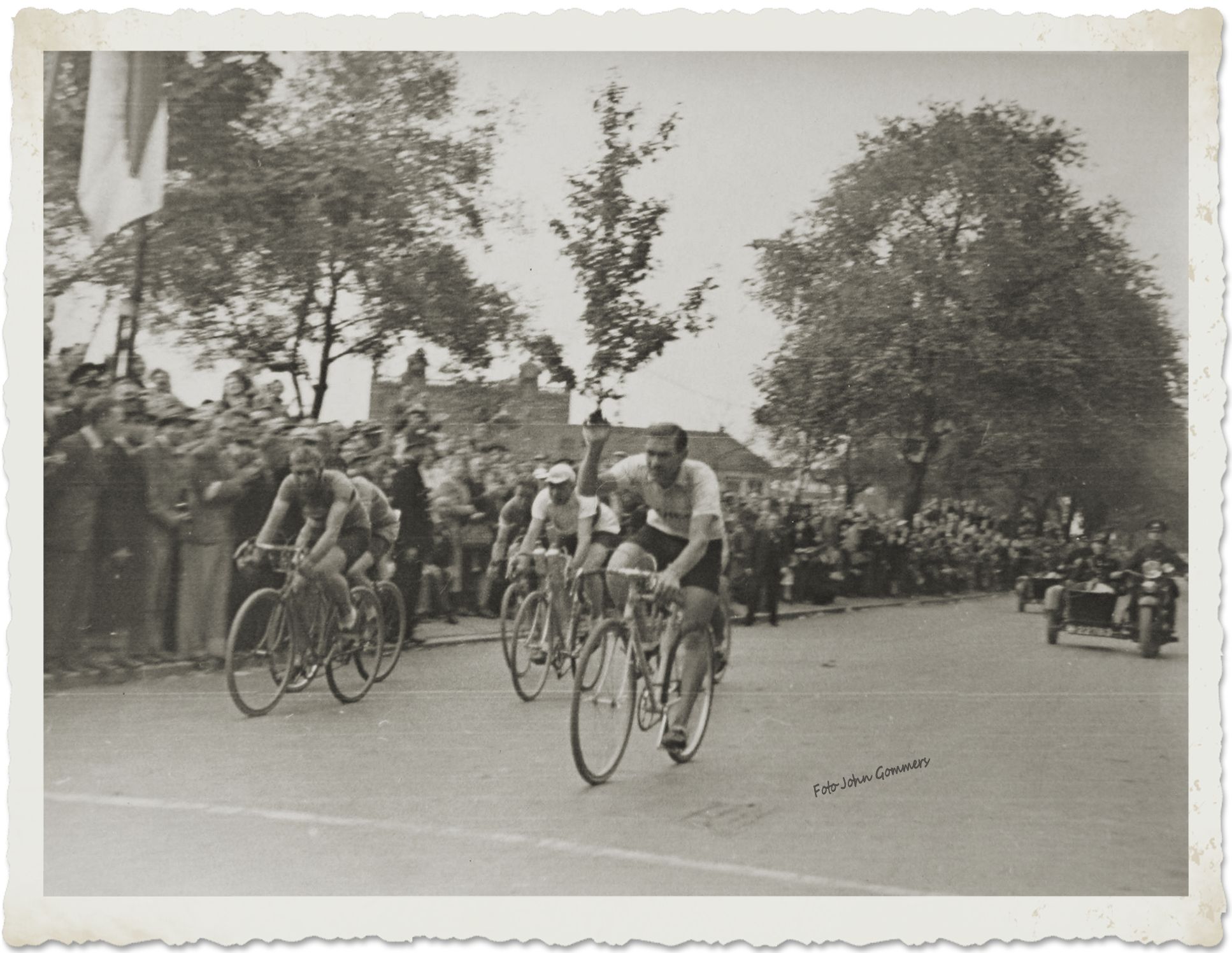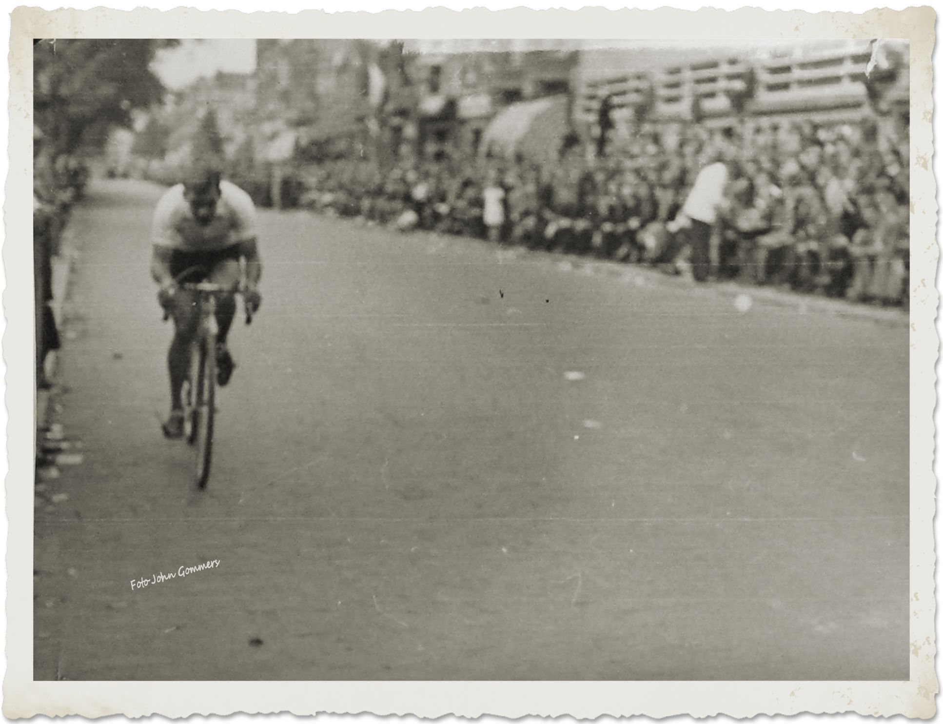 Toen zag Jan Gommers zijn kans schoon, met een sprong was hij weg, nam 100 meter, daarop volgden Van Amsterdam en van der Ruit, Braspennincx en de anderen. Gommers had de smaak te pakken, zette hard door en nu kwam hij, steeds zijn voorsprong vergrotend, ronde na ronde alleen door.