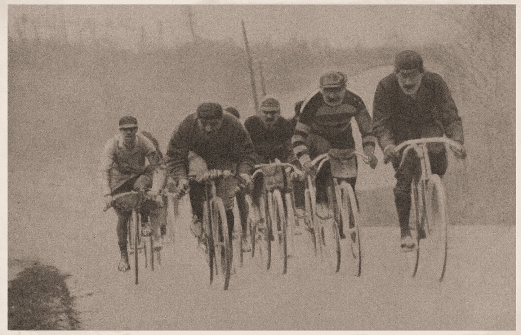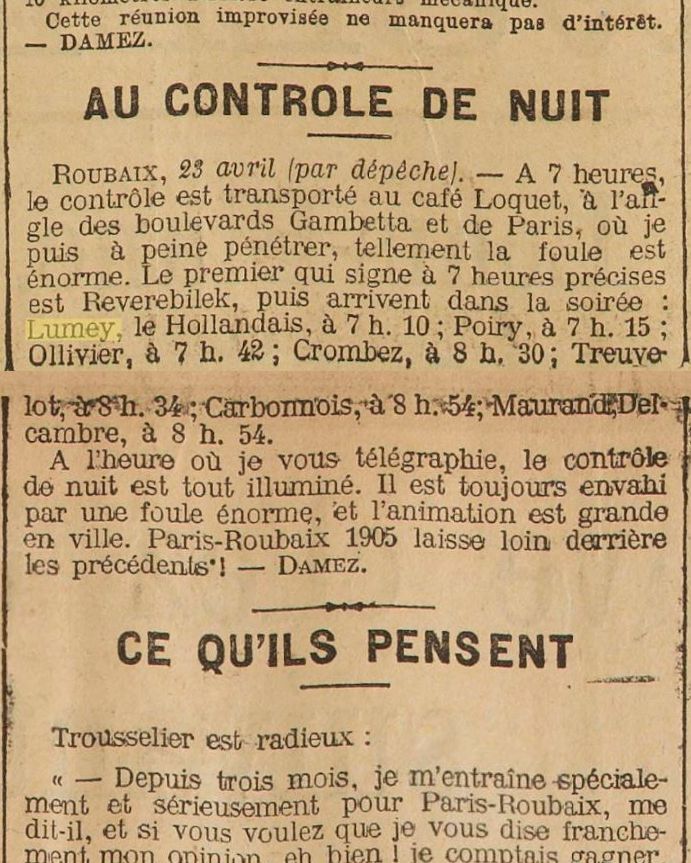 Sfeerbeeld van Parijs Roubaix 1905,  110 deelnemers, Lambert Lumey klasseert zich uiteindelijk als 20e