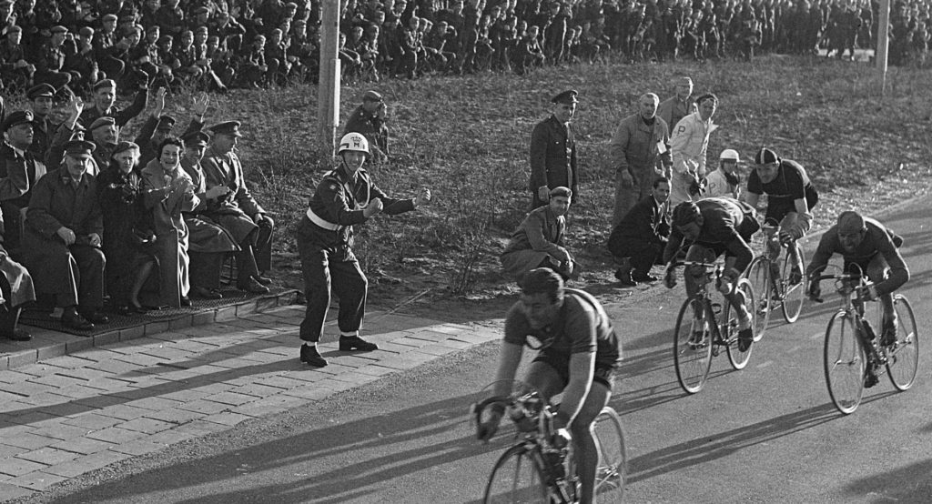 Kort na Leeuwarden moest De Vecchi wegens een lekke band afstappen. Met behulp van Seghezzi was hij weer snel bij. In Sneek (130 km) lag de kopgroep 8 min 45 sec voor en nadat Thijs Roks bij Lemmer van achterwiel had gewisseld liep de voorsprong iets terug tot 8 minuten, maar toen wij in Wanneperveen met nog 100 km voor de boeg opnieuw de situatie opnamen, was ’t verschil meer dan tien minuten geworden.