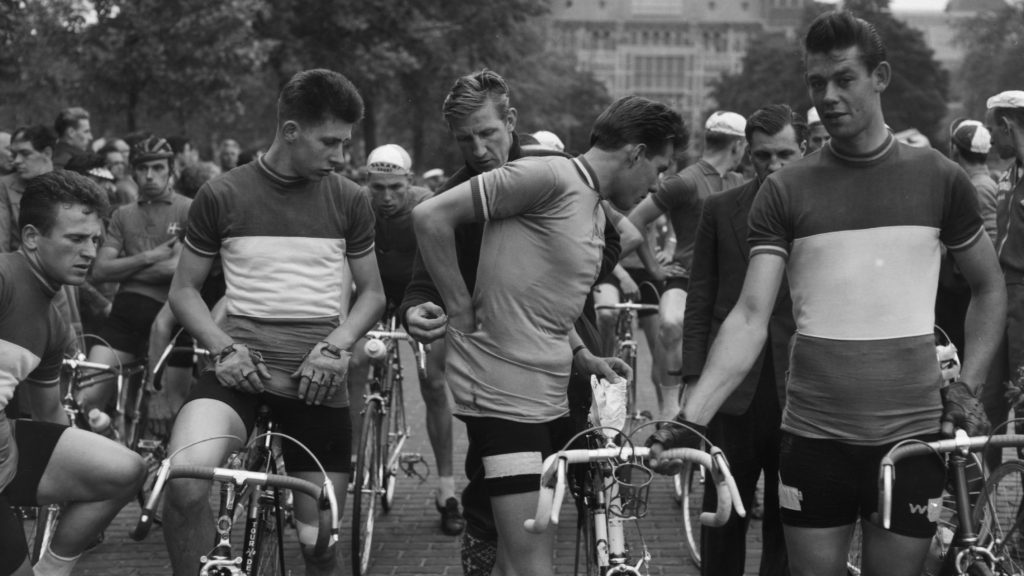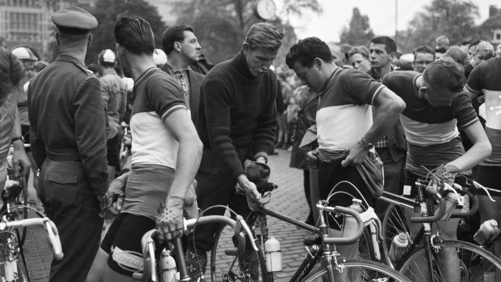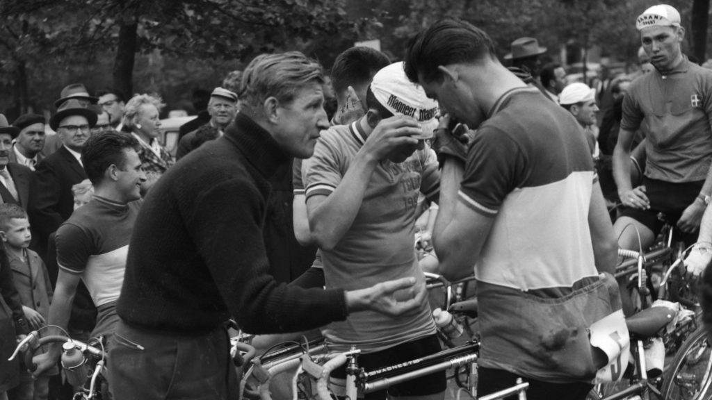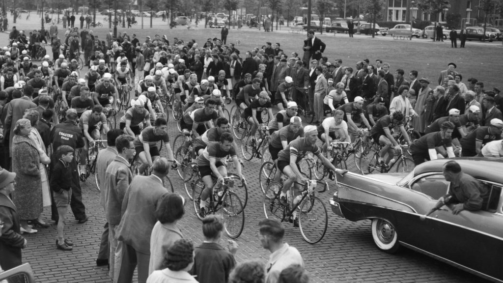 Ik vond een paar prachtige foto’s van bij de start van deze etappekoers te Amsterdam in het nationaal archief en las een vreemd, enigszins grappig artikel in Het Parool van 29 mei 1959: