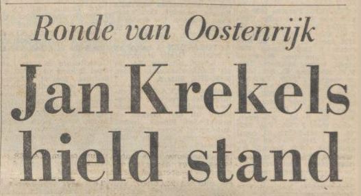 In de schaduw van de aloude Sint Stefans toren in Wenen klonk zondagmiddag het „Wilhelmus” ter ere van Jan Krekels. Nog eenmaal moest de man uit Born, die negen dagen lang het fel begeerde leiderstricot in de Ronde van Oostenrijk droeg, een huldiging ondergaan. Met een levensgrote lauwerkrans om de schouders stond de 20-jarige Jan op de hoogste trede van het erepodium als eindoverwinnaar van een ronde waarin de Nederlandse équipe volledig de toon aangaf. Immers Jan Krekels zorgde niet alleen voor de overwinning in het algemeen klassement, hij sleepte ook de eerste plaats in het puntenklassement in de wacht. En alsof dat nog niet voldoende was: de Nederlandse ploeg, onder aanvoering van Jan Krekels, greep met goot vertoon van overmacht de zege in het algemeen ploegenklassement.
