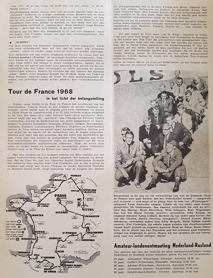 „Iedere dag moest ik voor de televisiecamera verschijnen om mijn relaas te doen. De eerste keer liep het niet al te best, maar daarna raakte ik er bedreven in. Voor de radio heb ik talrijke keren commentaar moeten geven. Het Oostenrijkse volk heeft hij de overwinning van harte gegund. Ik werd spontaan gehuldigd. Het leukste vond ik de reactie van een 11-jarig meisje. Zij had op witte stof een beker geborduurd met mijn en haar naam er in. Die tweede plaats in de tijdrit heeft mij bijzonder veel plezier gedaan. De Ronde van Oostenrijk is heel iets anders dan een Olympia-Tour. Elke etappe is langer dan 200 km. Er moet kilometers lang worden geklommen. Daar moet je alleen tegen de concurrentie vechten. Veel renners bezweken door de aanhoudende hitte Leen de Groot had te kampen met aanhoudende kramp. We vonden ’t jammer, want nu moesten we met minder mankracht de Oostenrijkse aanvallen afweren. Mijn vrienden hebben me echter geen moment in de steek gelaten. Vooral Henk Van der Vught was ’n meesterknecht. Hij had deze ronde verleden jaar al gereden en maakte me iedere dag opmerkzaam op geniepige trajecten of gevaarlijke belagers”