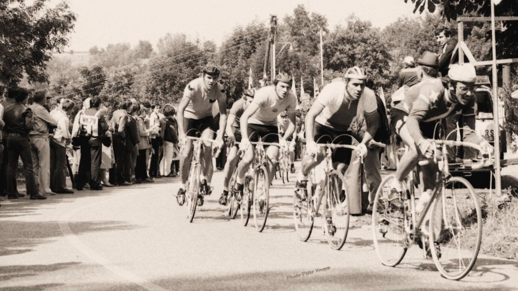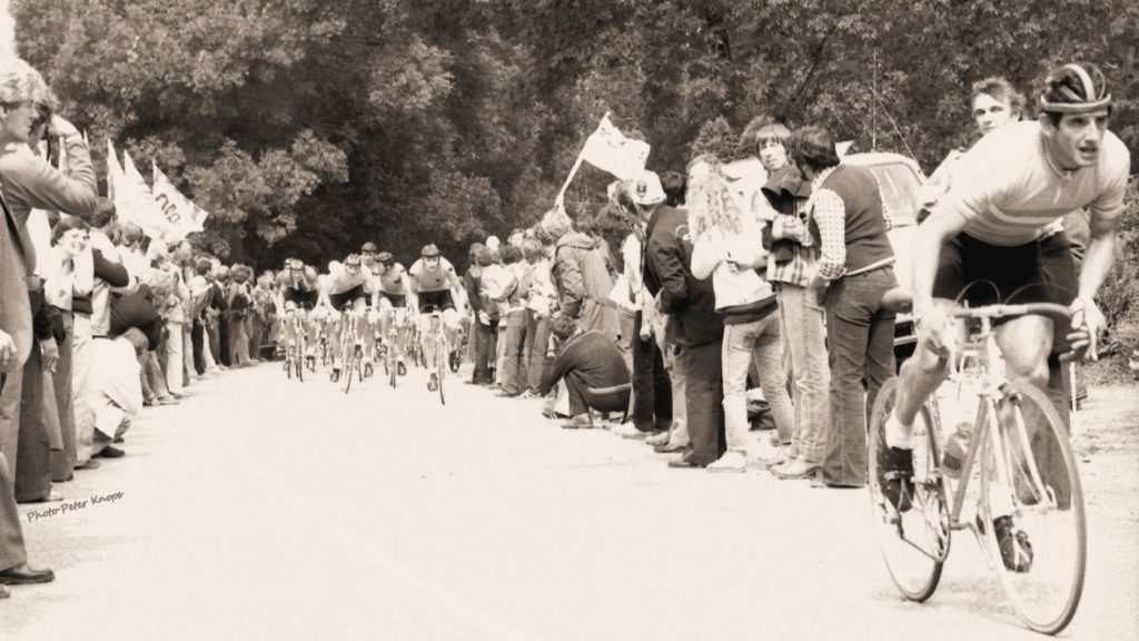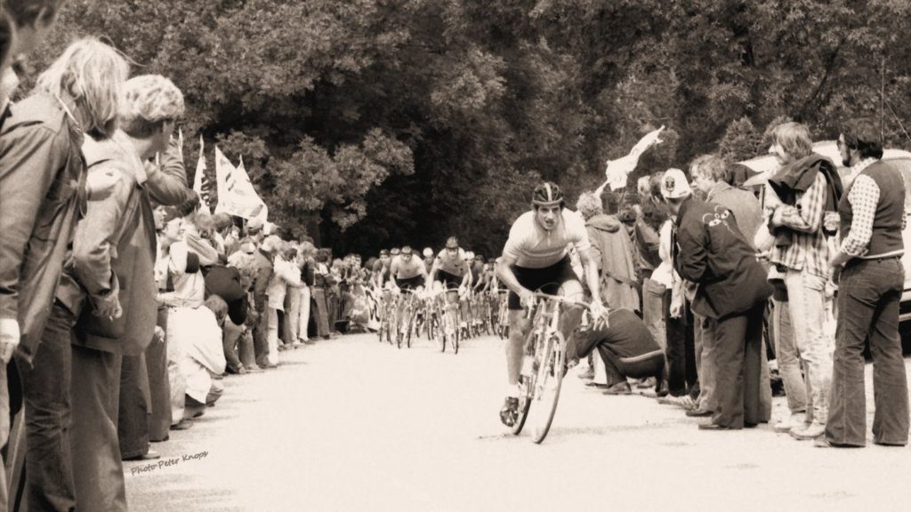 beklimming BemelerbergWie meer dan alle anderen in topvorm verkeerde, was de Italiaan Gianni Giacomini, de nieuwe wereldkampioen. Toen de Oost-Duitser Drogan, de Pool Jankiewicz en de Brit Millar de groep met Wijnands al ver achter zich hadden gelaten, daverde Giacomini als een trein naar de leiders toe. Een opvallend staaltje machtsvertoon van een even opmerkelijk renner.