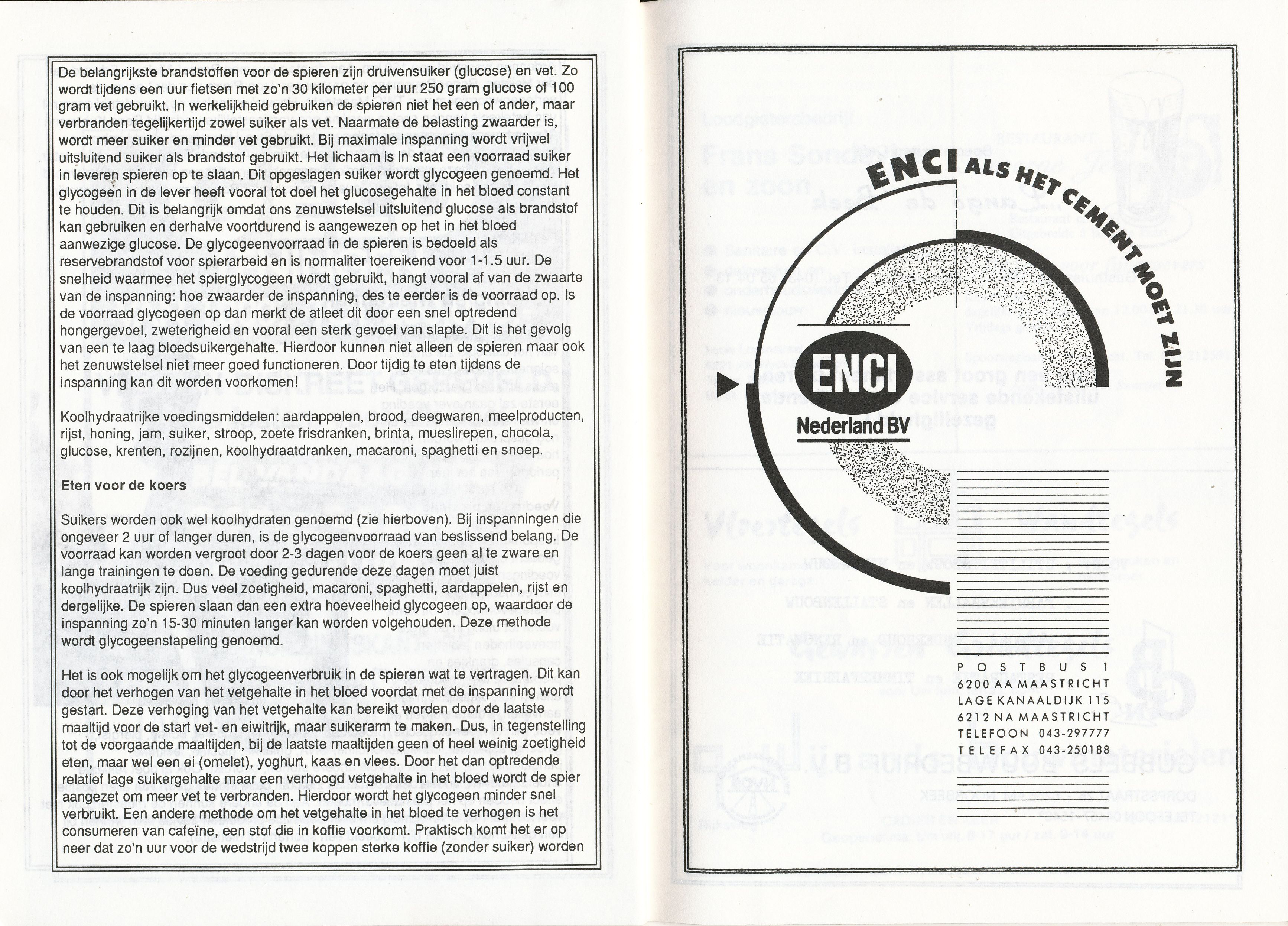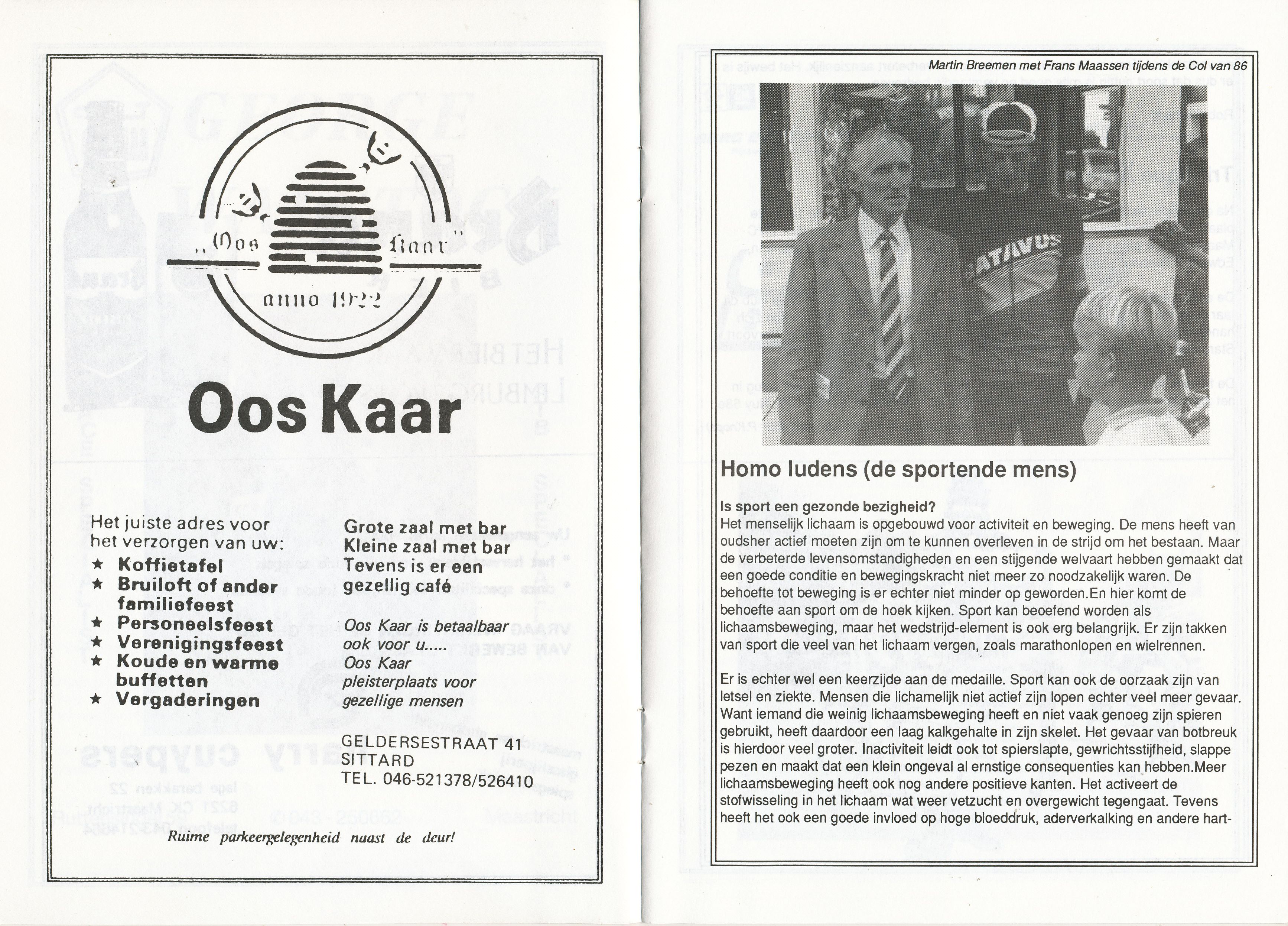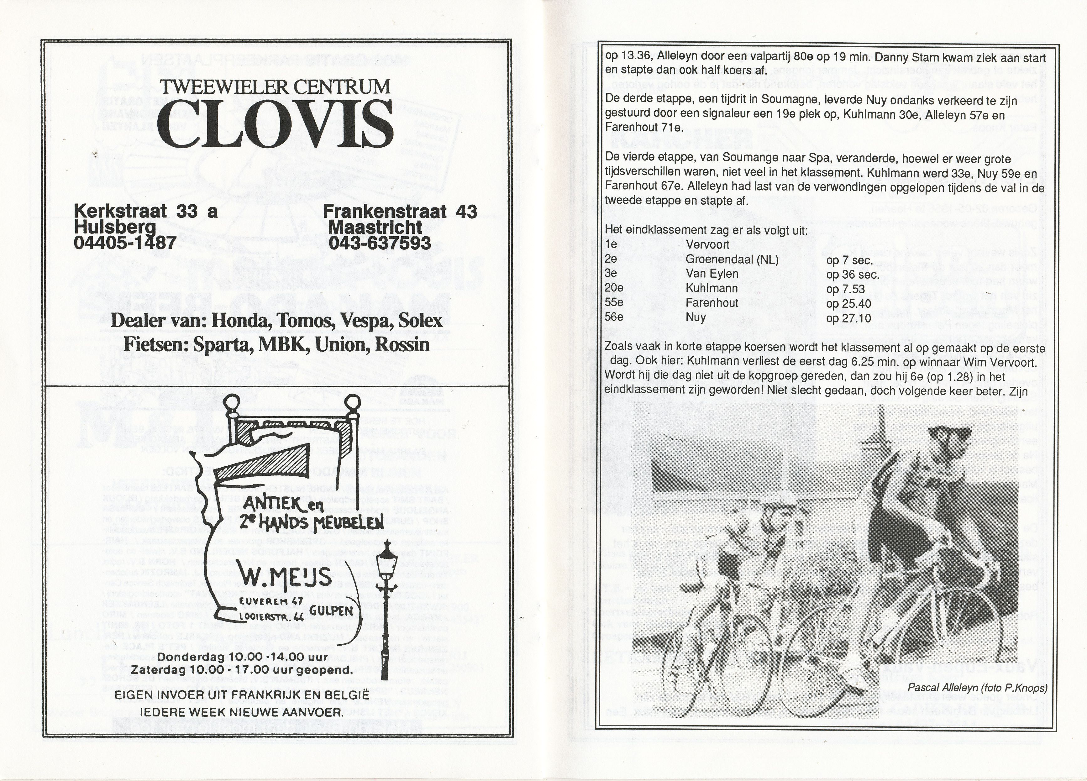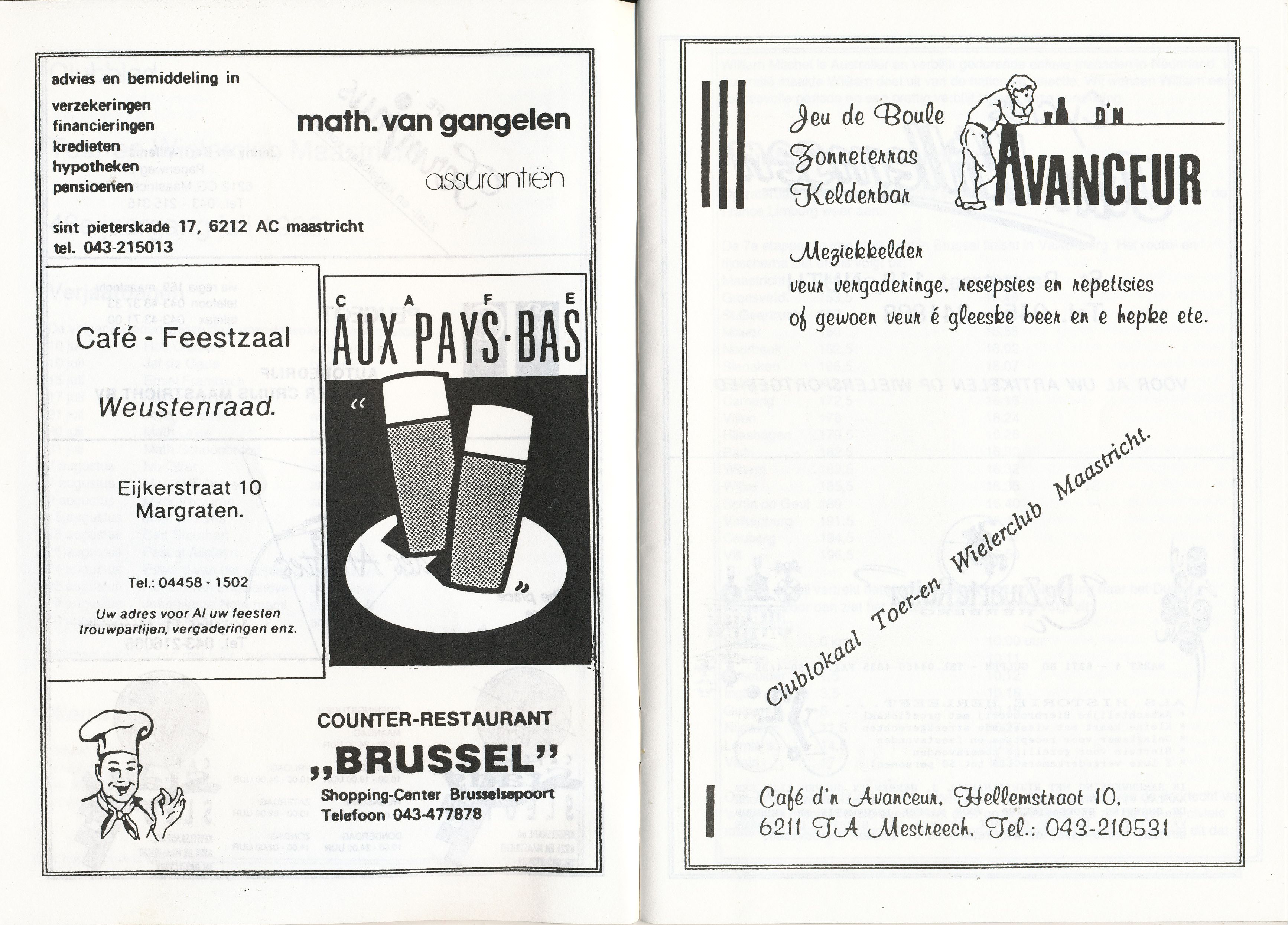Van Jo Hendriks kreeg ik, uit zijn archief, dit clubblad cadeau. “Heb ik dubbel” zei hij, maar volgens mij met voorbedachte rade, aangezien mijn naam er een aantal keren in voorkomt, in ieder geval is het een van de laatste exemplaren van het TWC clubblad want later dat jaar zijn de fusiebesprekingen begonnen die uiteindelijk resulteerden in het opgaan van TWC Maastricht, TWC Heer en WCl de Ster Geleen in de nieuw te vormen wielervereniging TWC Maaslandster