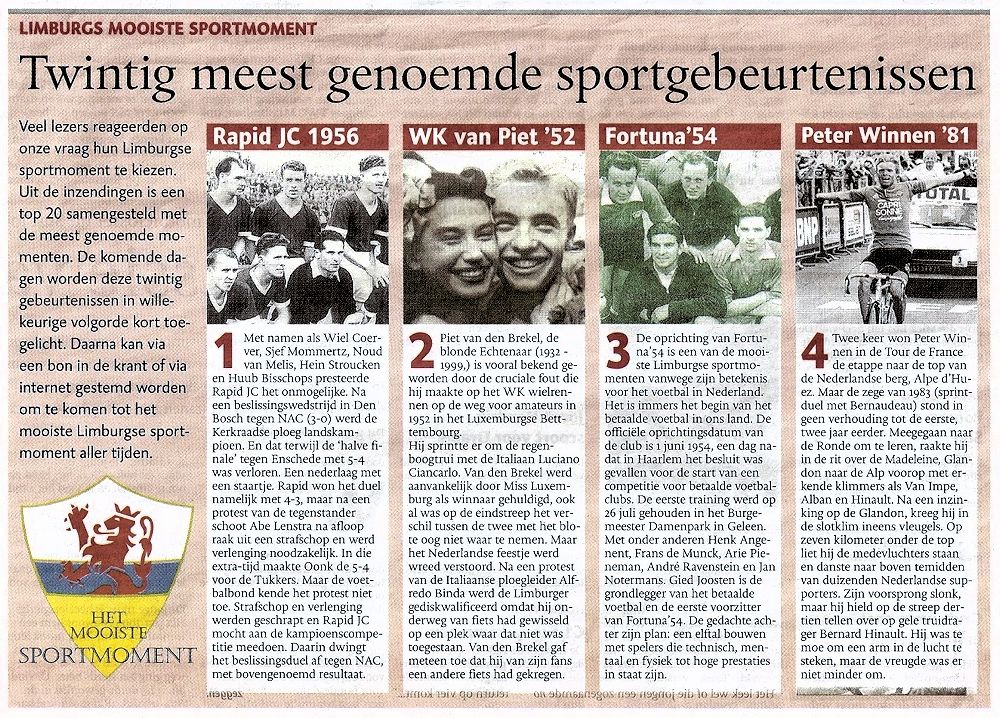De meeste kansen op eervolle plaatsen worden voor wat de amateurs betreft door de sportcommissie toegekend aan Gelissen uit Beek, die knap reed in het heuvelland en naarmate het seizoen is gevorderd, een steeds betere vorm is gaan vertonen en aan Adri Voortuig, die te Helsinki in buitengewone vorm was, maar door pech achtervolgd, reeds vrij spoedig nr het begin uitgeschakeld was voor een medaille