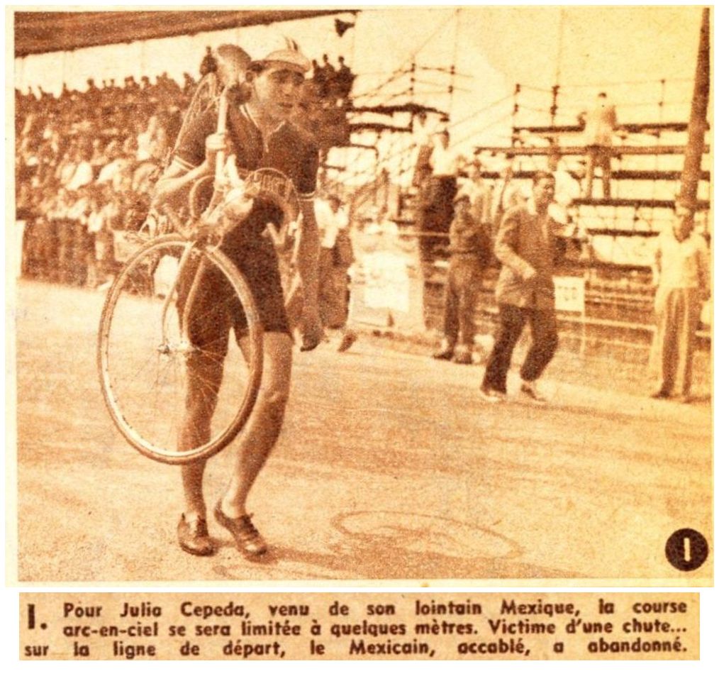 Zes renners, bestaande uit onze landgenoot Piet v. d. Brekel, Jacquet en de Uruguees de Los Santos, kwamen door met een voorsprong van 31 sec op het peloton, dat lang gerekt was. In de grote groep mankeerde een Nederlander, Arend van ’t Hof, die kennelijk moeilijkheden had met zijn derailleur, toen hij langs de eretribune kwam. Bij de valpartij in de tweede ronde waren vier renners ernstig gewond, te weten de Engelsman Graham, de Japanner Kato de Libanees Nalttchayan en de Belgische kampioen van Looy, die een arm brak. Evenals in Helsinki werd hij dus door pech uitgeschakeld. De samenwerking in de kopgroep was uitstekend en in de derde ronde, die in 25 min 18 sec (gem. 41.501 km) ging, groeide de voorsprong van de koplopers geleidelijk.